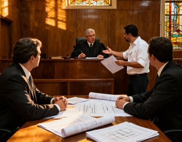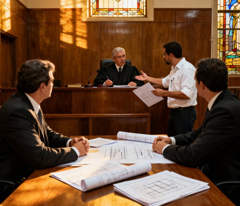 Atuação do engenheiro como assistente técnico do advogado, analisando laudos periciais, quesitos, provas e manifestações técnicas ao longo de um processo judicial.